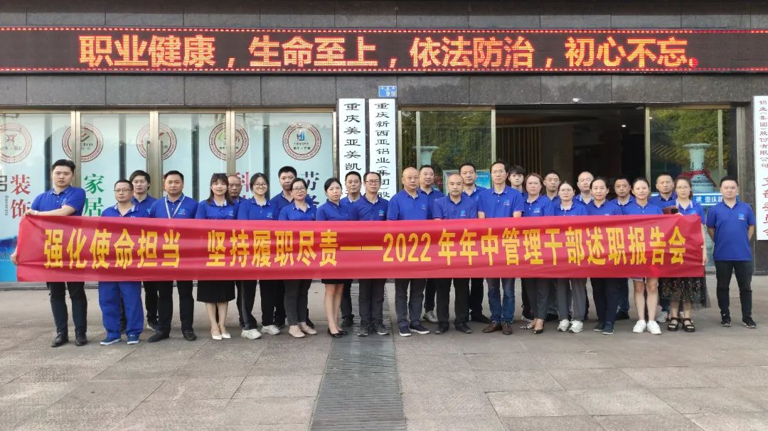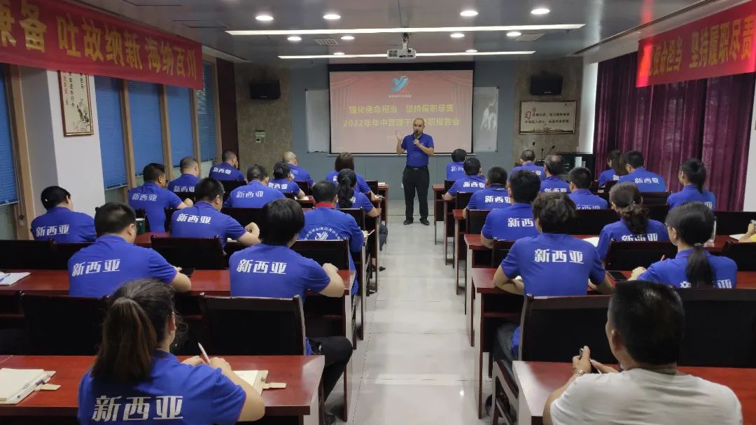 經過精心組織與籌備,新西亞鋁業集團“強化使命擔當,堅持履職盡責”——2022年上半年管理干部述職會于7月5日下午在新西亞商學院如期召開,公司經營班子成員、中高層管理干部以及員工代表共計50余名參加了會議,運營保障部經理馮遠道主持會議。