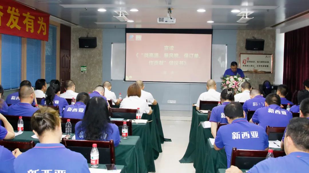 全體新西亞家人們,下半年集團公司的各項工作目標、工作措施 已明確,戰(zhàn)高溫、保訂單的號角已經(jīng)吹響。讓我們在以劉斌總經(jīng)理為核心的經(jīng)營班子的正確領導和科學決策下,以時不我待的緊迫感,不進則退的危機感,非進不可的責任感,彰顯工作激情,昂揚的工作斗志,篤定前行。用百倍的拼搏進取、千倍的信心勇氣,扎實推動各項目標任務落實落地。做到政治自覺,思想自覺,行動自覺,用汗水彰顯主人翁責任感,用辛勤勞動完成好每一份訂單,以優(yōu)異的成績迎接黨的二十大勝利召開!