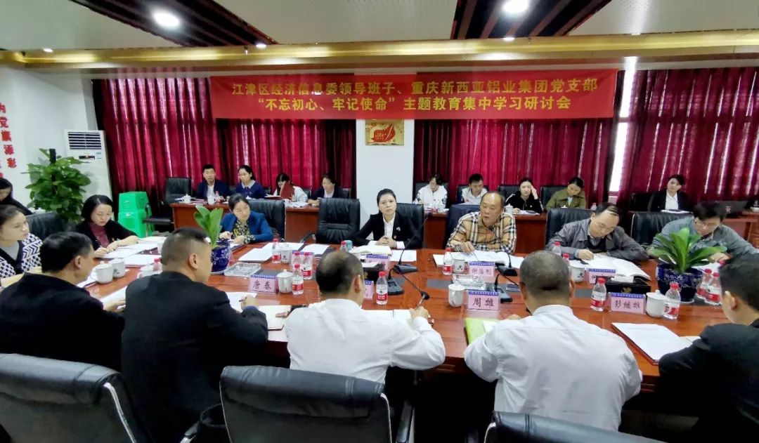 10月17日下午,江津區經信委領導班子、新西亞鋁業集團黨支部“不忘初心、牢記使命”主題教育集中學習研討會在公司黨群活動中心舉行。區委直屬機關工委、區經信委班子成員、中小企業服務中心黨支部全體黨員及新西亞鋁業集團黨支部部分黨員,共30名黨員同志參加了學習活動。研討會由區經濟信息委黨組副書記、副主任謝治剛主持。