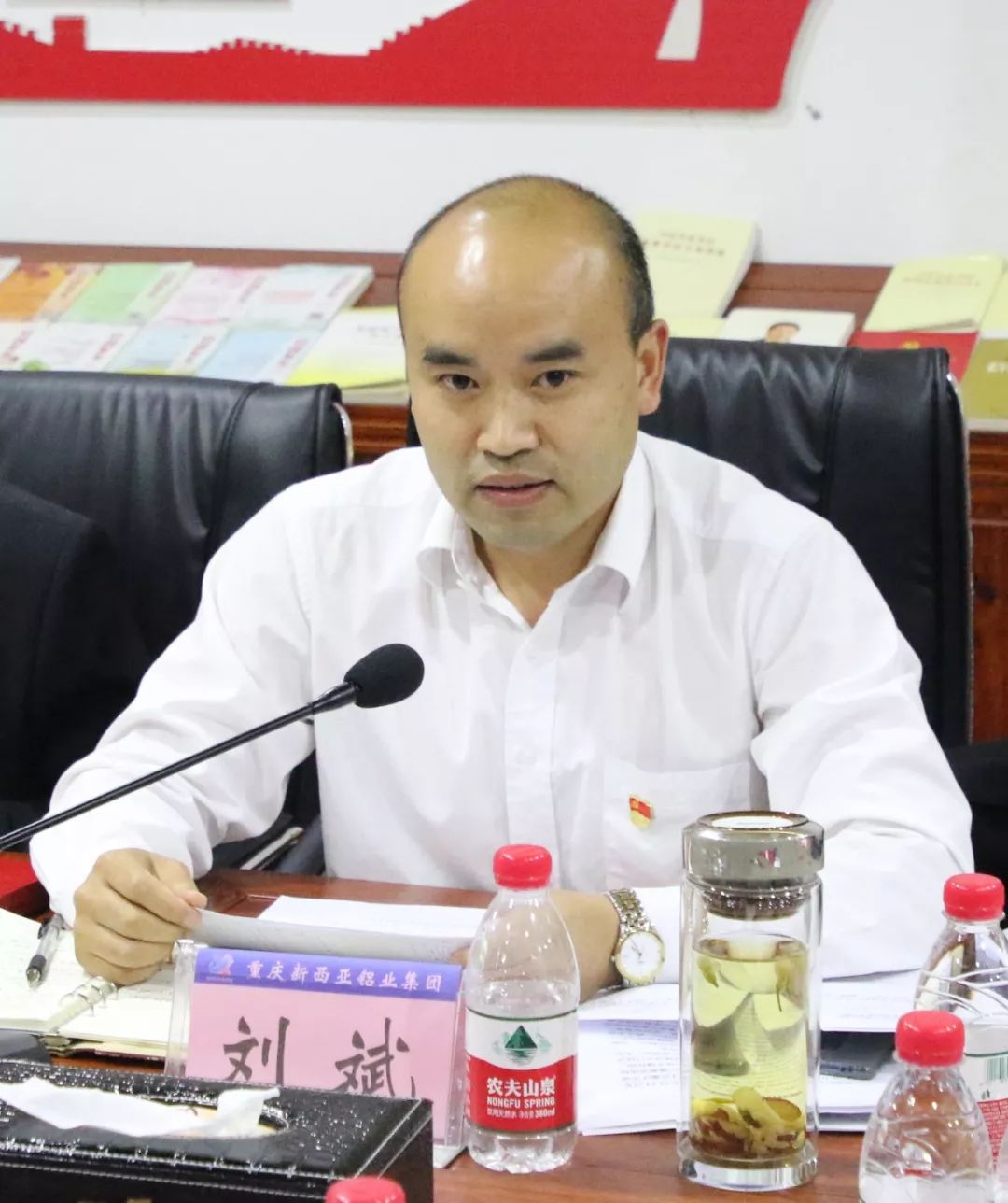 會上,劉斌總經理表示,非常感謝政府各級領導對重慶新西亞鋁業集團在創業路上的長期支持、關心和幫助。作為民營企業的黨員領導干部,我一直爭做政治堅定的表率、爭做為員工謀福利的表率、爭做廉潔自律的表率、爭做抓黨建促發展的表率。同時把開展“不忘初心、牢記使命”主題教育與企業獻愛心深度融合,把開展“不忘初心、牢記使命”主題教育與脫貧攻堅深度融合。力求使“不忘初心、牢記使命”主題教育活動走在前列、干在實處、收到實效。