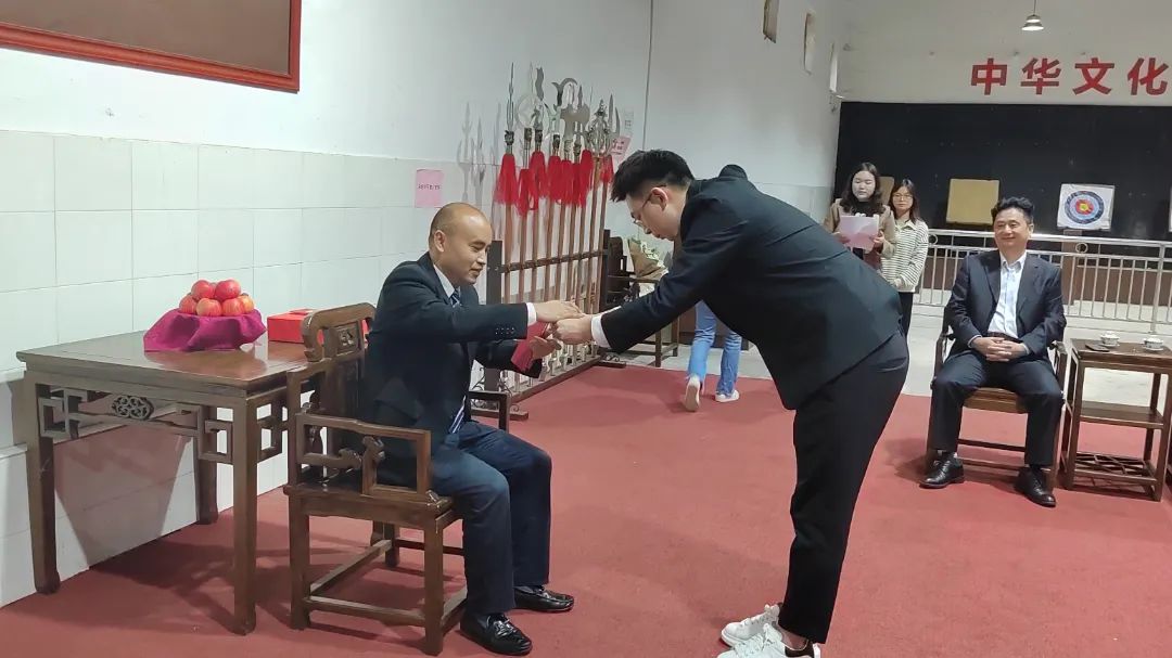 儀式上,師傅劉斌分享了四點自己的人生感悟與愛徒劉洋共勉。劉斌言道:人生之意在于探索未知,創(chuàng)造價值,承擔責任,擁抱情感,希望弟子劉洋能認知人活著的意義,走好人生路,成就好人生;在人生的道路上,會遇到各種各樣的朋友,他告誡弟子在交友之路上要結(jié)交“三觀”統(tǒng)一的良友,諳熟交友之道,交人生中能幫助自己成長的好朋友;在創(chuàng)業(yè)的道路上,希望弟子能堅守“堅持、責任、創(chuàng)新、發(fā)展”的創(chuàng)業(yè)之道,要把干成一份事業(yè)作為干事創(chuàng)業(yè)的遠大目標;在立世之道上,要把“誠信、情懷、修養(yǎng)、創(chuàng)新、品格”作為自己的立世之本,守業(yè)有方,實現(xiàn)新作為。