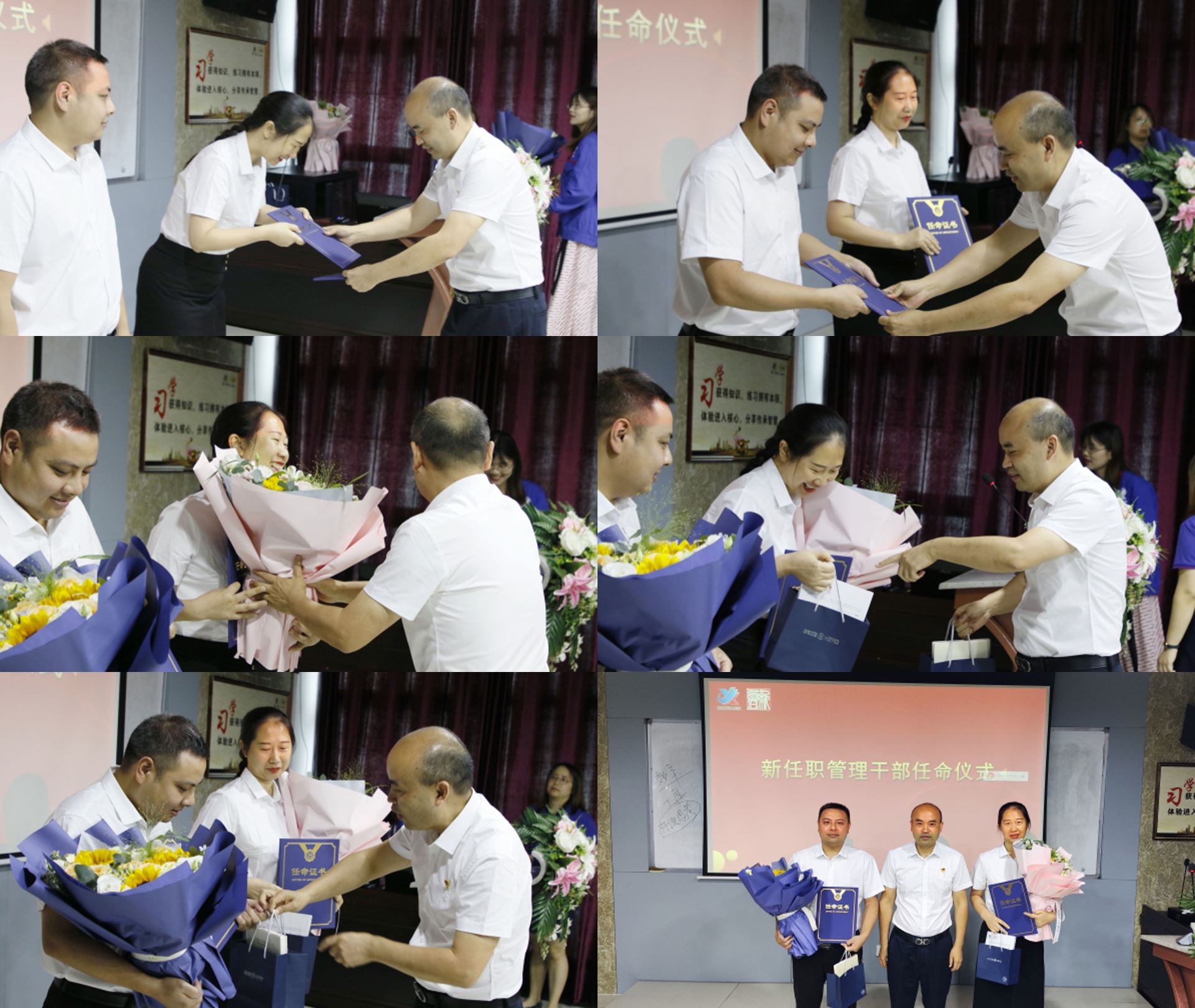 集團公司董事長兼總經理劉斌分別與新任職干部簽訂了《任期履職承諾書》、頒發了任命書,并為他們送上了精心準備的禮物和鮮花。