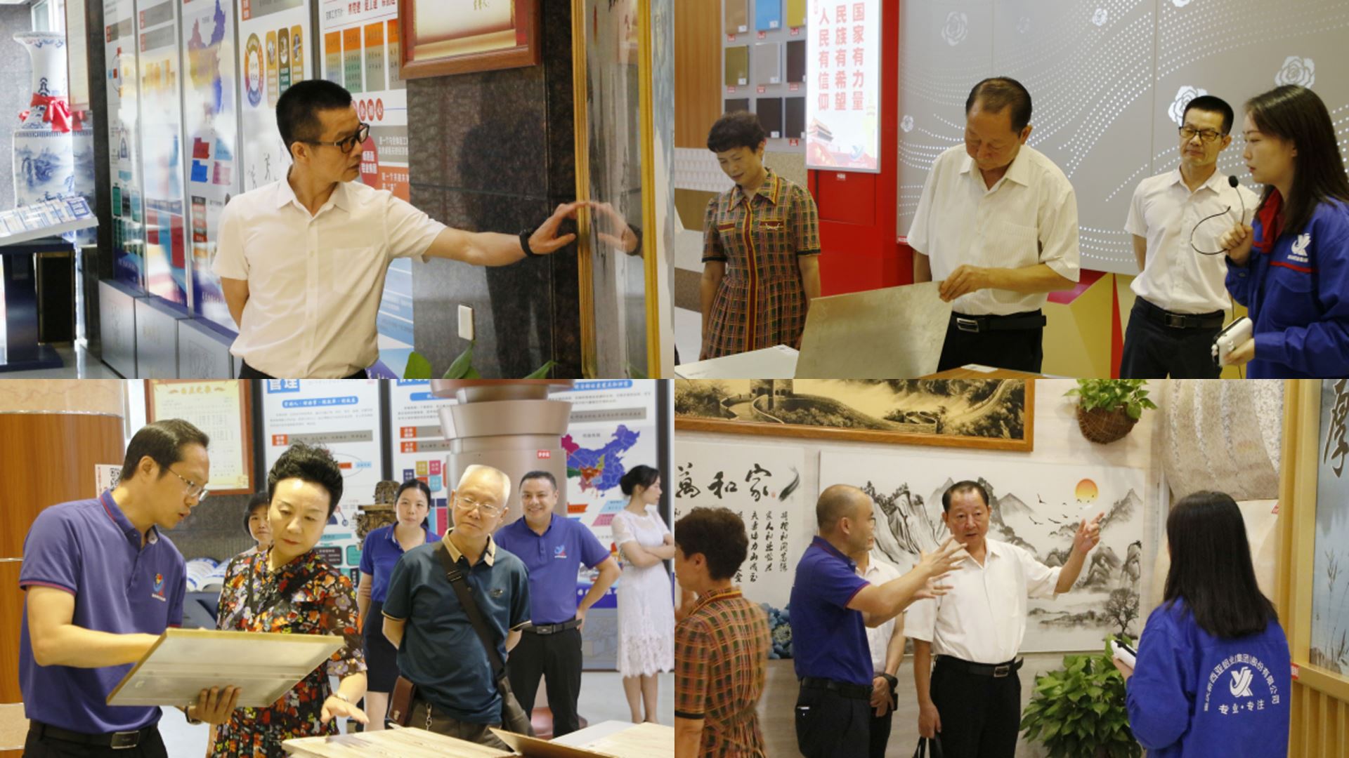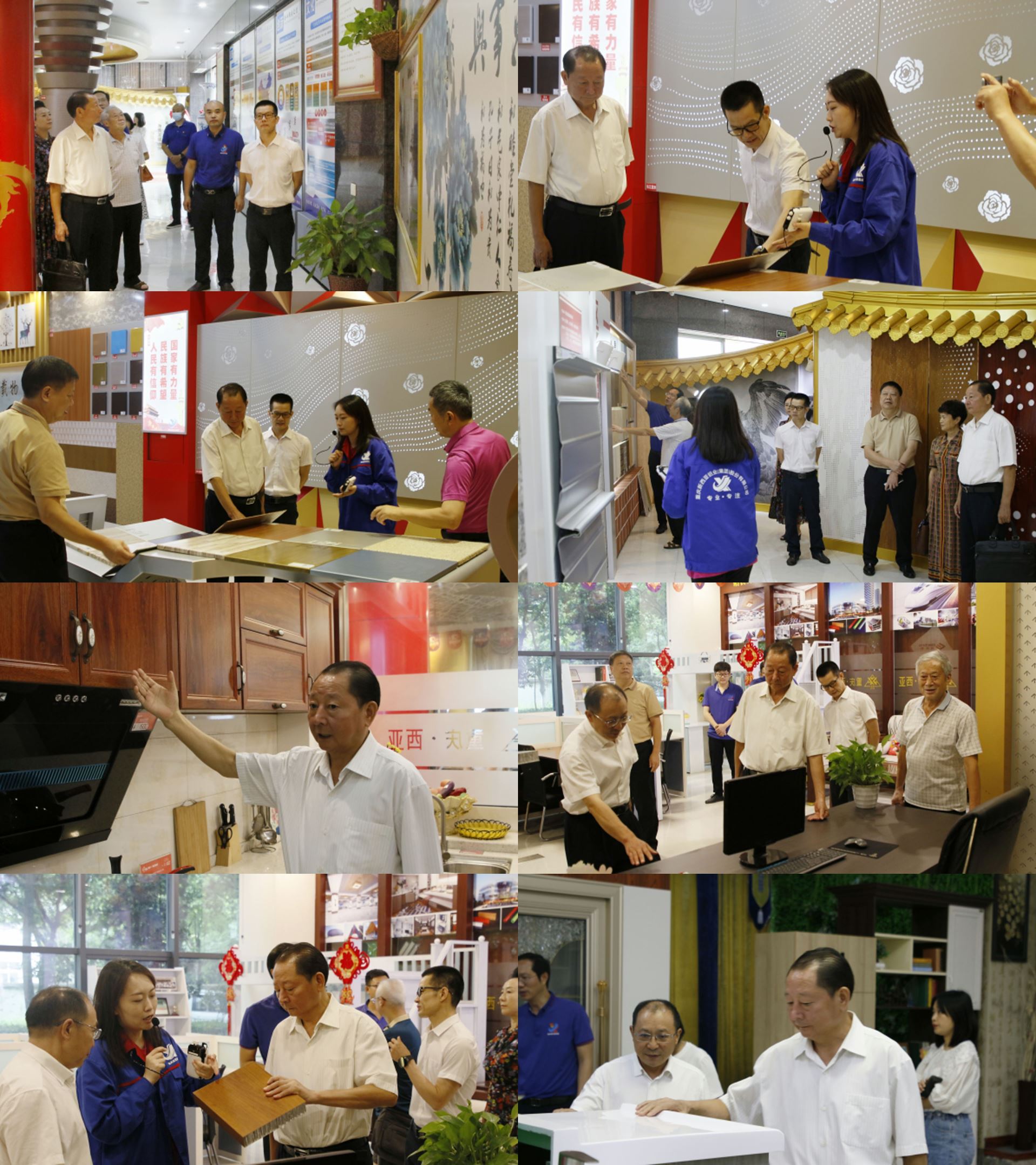 參觀過程中,調研小組一行不時駐足觀看,對蝕刻工藝鋁板畫、仿石仿木藝術涂層等產品以及鋁家居表面膚感膜皮等工藝表現出極高的興趣,對新西亞科技創新成果給予充分肯定,表示此行調研收獲頗豐,雙方還就如何更好發揮科協組織優勢和資源優勢更好推進科技創新工作展開深入交流。