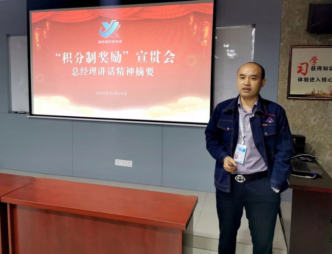 為創(chuàng)新企業(yè)管理,全方位調(diào)動(dòng)員工的積極性,激發(fā)員工創(chuàng)造的潛能。4月18日上午,公司召開(kāi)了“積分制獎(jiǎng)勵(lì)宣貫會(huì),公司經(jīng)營(yíng)班子成員、部門(mén)負(fù)責(zé)人、主管人員、班組長(zhǎng)共計(jì)36人參加了會(huì)議。