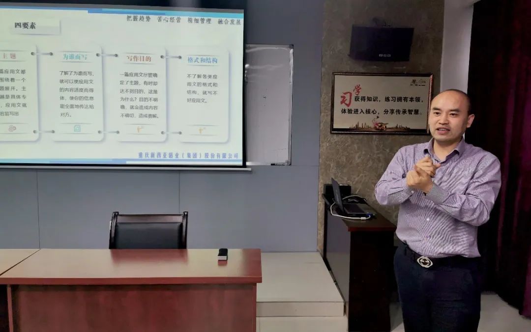 公司總經(jīng)理劉斌圍繞應(yīng)用寫作的特征、種類、性質(zhì)、特點、格式、專用語言在內(nèi)的應(yīng)用寫作基本內(nèi)容給予了知識講解,從“為什么要重視寫作、如何學(xué)習(xí)寫作、應(yīng)用寫作關(guān)鍵點在哪里”三個方面就如何提升應(yīng)用寫作能力進行了詳細(xì)闡述,結(jié)合個人工作經(jīng)驗,表達了“會寫材料的人不是主要因為會寫,而是因為深入思考。”讓參會人員對如何寫好應(yīng)用文有了一個全新的、更高層次的認(rèn)知。