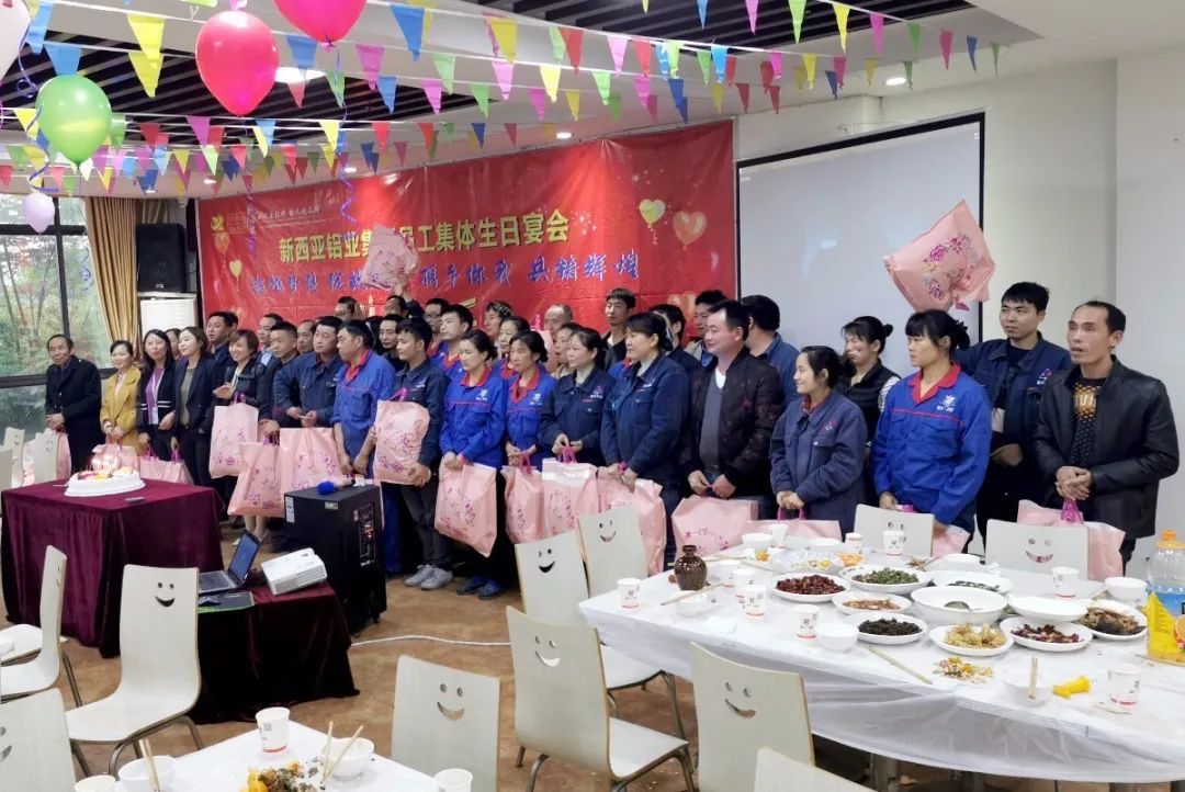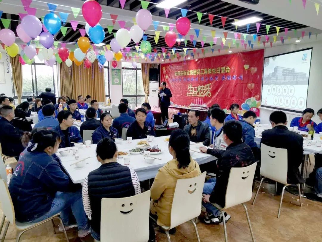 疫情消散,櫻花爛漫,怒放的生命綻放不老的容顏;年歲雖添,活力不減,歡快的節(jié)奏舞動生命的璀璨!4月23日,在全員搶訂單、抓生產(chǎn)戰(zhàn)斗正酣的關(guān)鍵時刻,重慶新西亞鋁業(yè)集團迎來了2020年首次員工集體生日宴會。公司經(jīng)營班子成員、1至4月份壽星共計70余人歡聚在食堂大廳,共同見證了這場充滿祥和與喜慶的生日宴會。宴會由公司團支部書記任光琳同志主持。