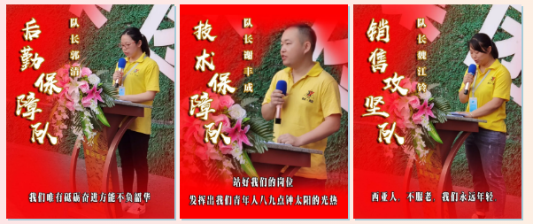 7支青年突擊隊隊長在表態發言中表示:將積極按照公司的整體安排部署,團結一心,勇于拼搏,主動帶領突擊隊隊伍積極投身于安全生產、市場開發、技術攻關、后勤保障等工作任務中,充分發揮青年突擊隊的排頭兵作用,讓青春在推動公司“創行業標桿、鑄民族品牌”的偉大進程中綻放光芒!