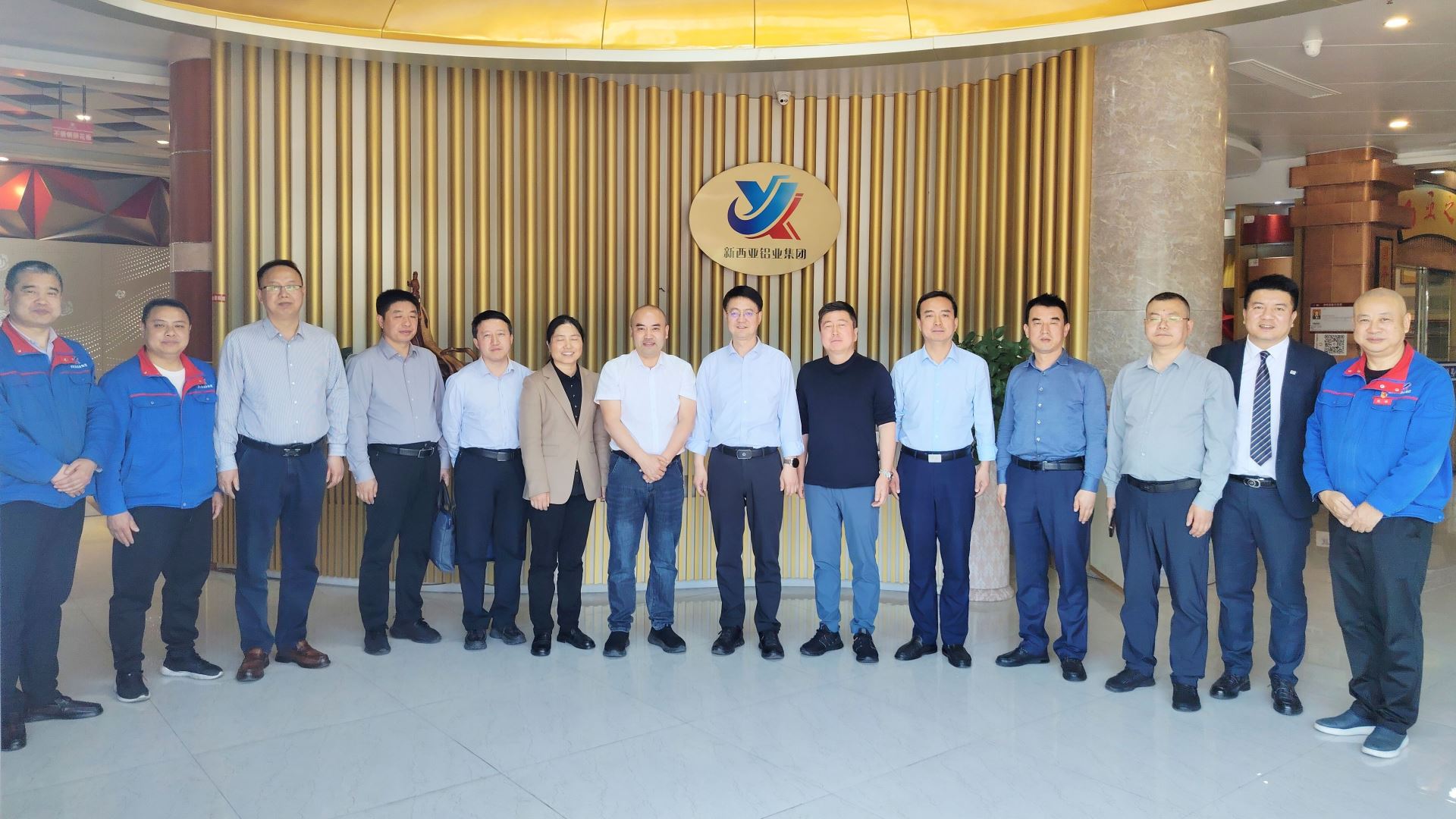 2025 年 3 月 26 日,千陽縣縣長張湛林、縣政協副主席岳云菊率領招商考察團,在重慶市陜西寶雞商會會長鄭肖等人的陪同下,蒞臨新西亞鋁業集團參觀交流。集團總經理劉斌及管理團隊以熱情洋溢的姿態迎接了張縣長一行,雙方共同開啟了一次意義非凡的產業協同探索之旅。