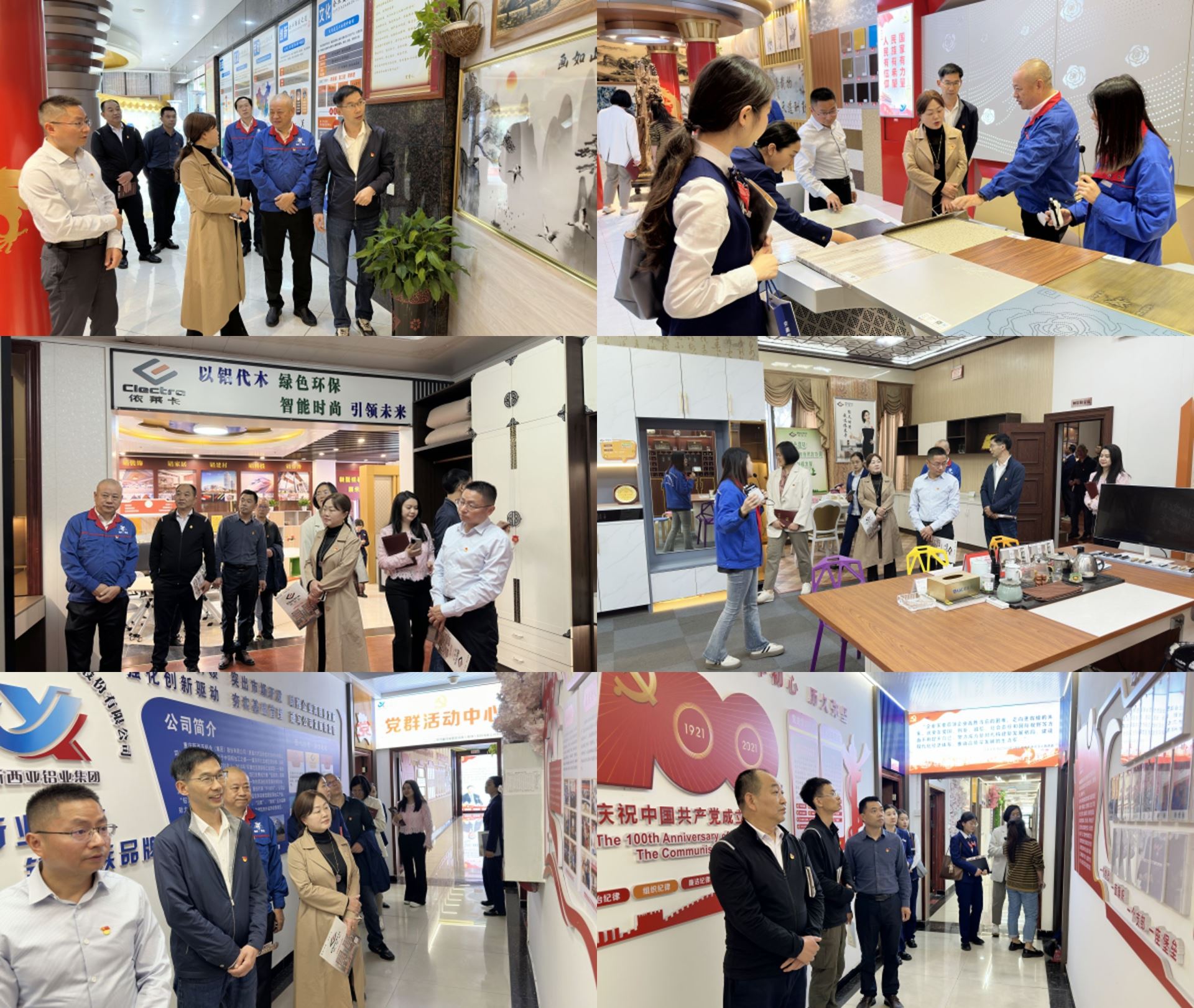 江津區(qū)科技局黨組成員、副局長(zhǎng)何浩祥、黃永梅,交通銀行重慶江津支行黨支部書記、行長(zhǎng)姚紅烈,副行長(zhǎng)黃微霞帶領(lǐng)雙方黨員代表約 20 人參加了此次活動(dòng)。新西亞鋁業(yè)黨支部支委成員周雄、傅明華陪同參觀了鋁裝飾展廳、鋁家居展廳以及企業(yè)文化長(zhǎng)廊。參觀過(guò)程中,詳細(xì)介紹了企業(yè)黨建文化融入生產(chǎn)經(jīng)營(yíng)管理的實(shí)踐成果,展現(xiàn)了黨建對(duì)企業(yè)發(fā)展的有力推動(dòng)作用。