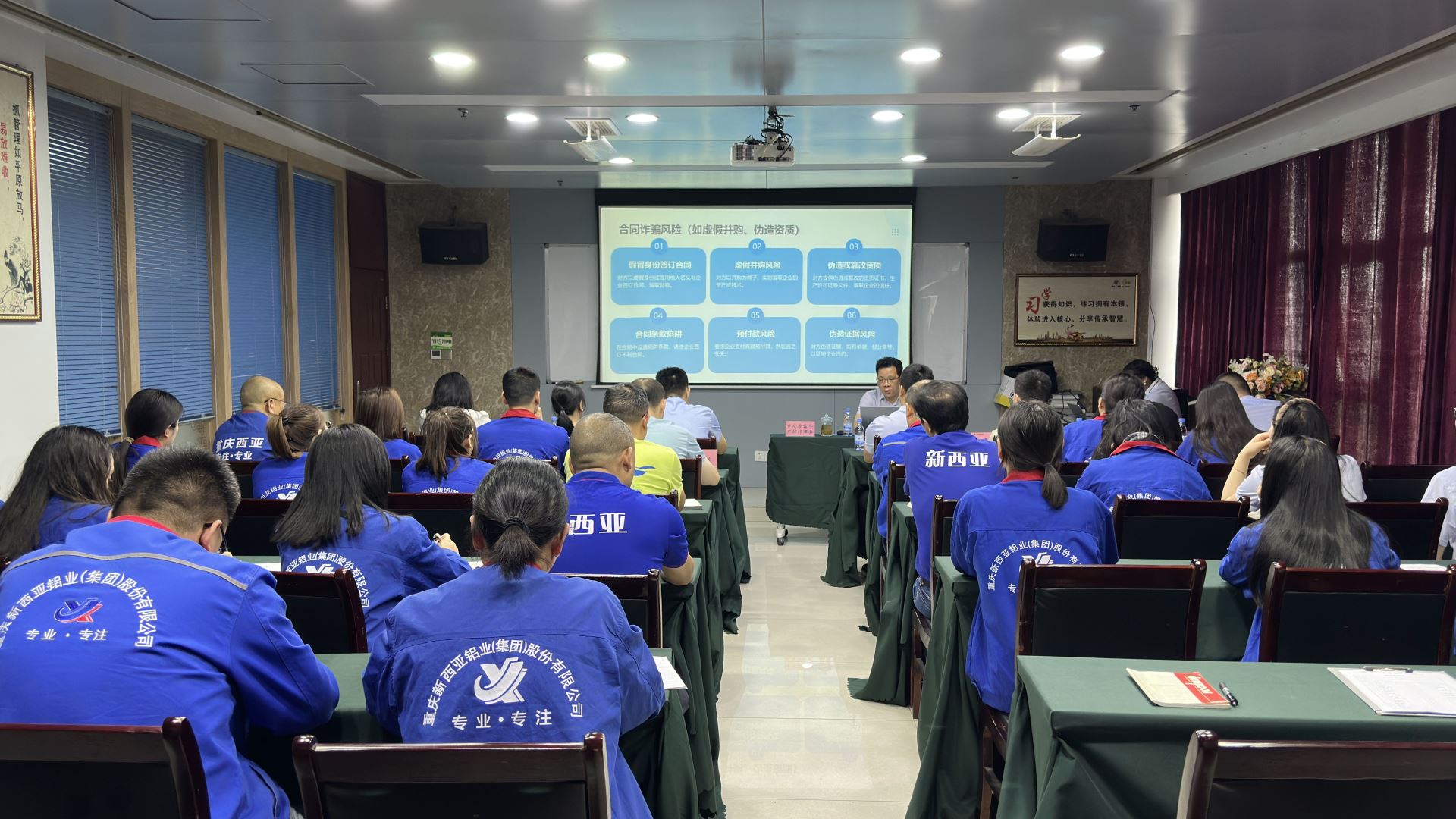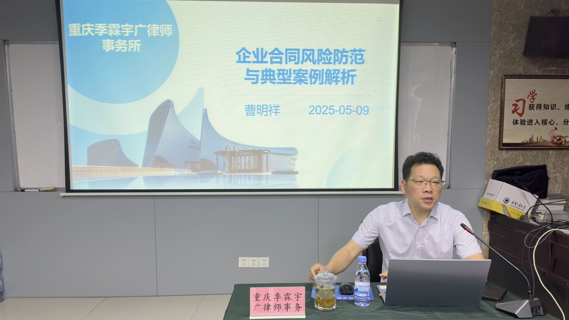 活動當日,重慶季霖宇廣律師事務所主任曹明祥以 “以法助企?護航發展”為主題,結合新西亞鋁業實際情況,開展了《企業合同風險防范與典型案例解析》專題法治宣講。宣講活動由公司總經理助理周雄主持,公司經營負責(管理)負責人以及員工代表共計 40 余人參加,涵蓋生產、銷售、人力等關鍵部門負責人及一線員工代表。曹主任聚焦制造業特點,剖析典型合同糾紛及勞動用工案例,著重講解風險識別、防范策略及民法典關鍵條款,助力企業提升依法維權與風險防控能力。