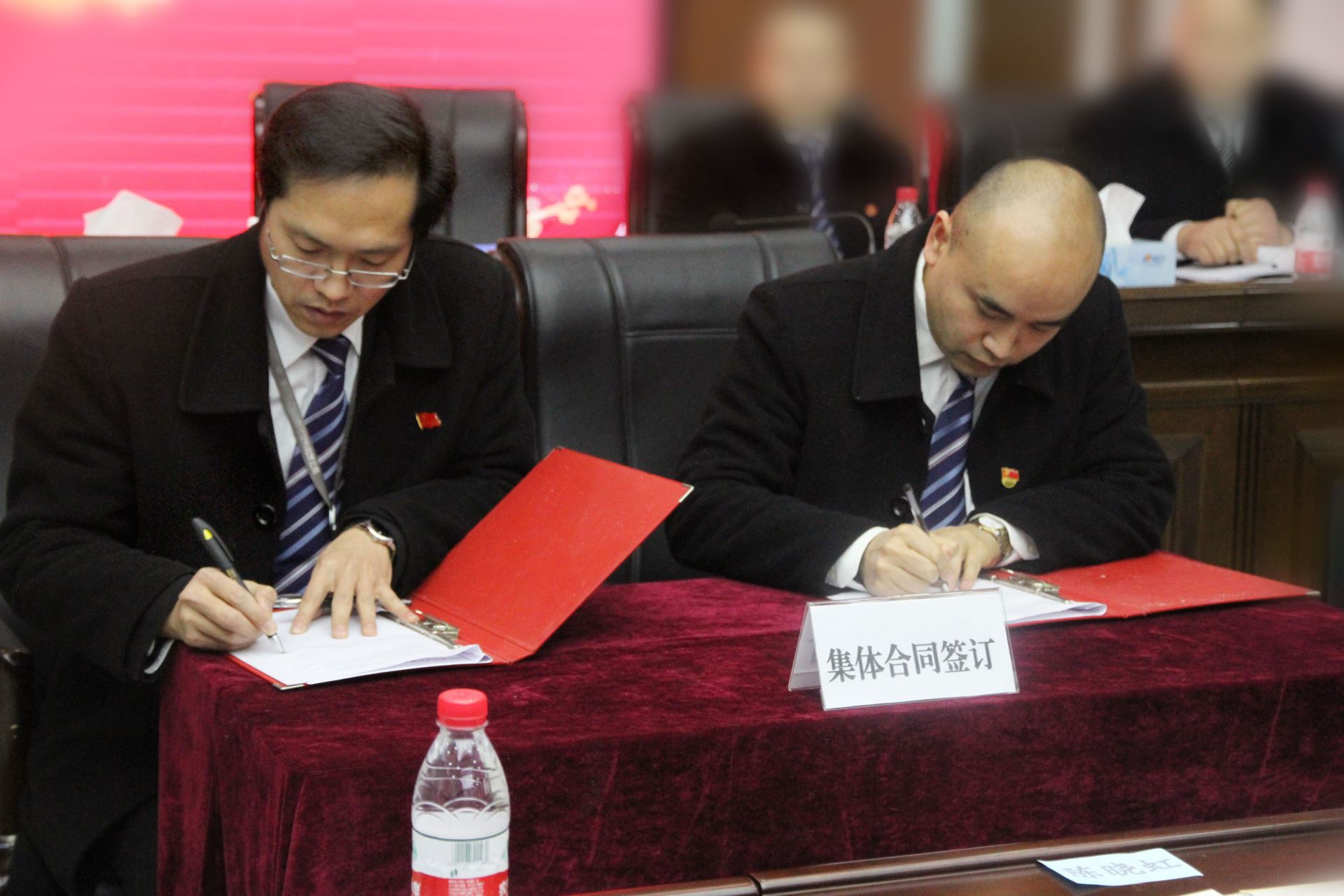 會上,董事長劉斌與工會主席傅明華簽訂了新西亞鋁業集團2019年《集體合同》;公司傅總經理傅明華宣讀了公司2019年干部任免決定;劉董事長親自將紅彤彤的“任命書”頒發給每一個公司經營班子成員和部門負責人手中,受聘干部隨即進行了莊嚴的集體宣誓。