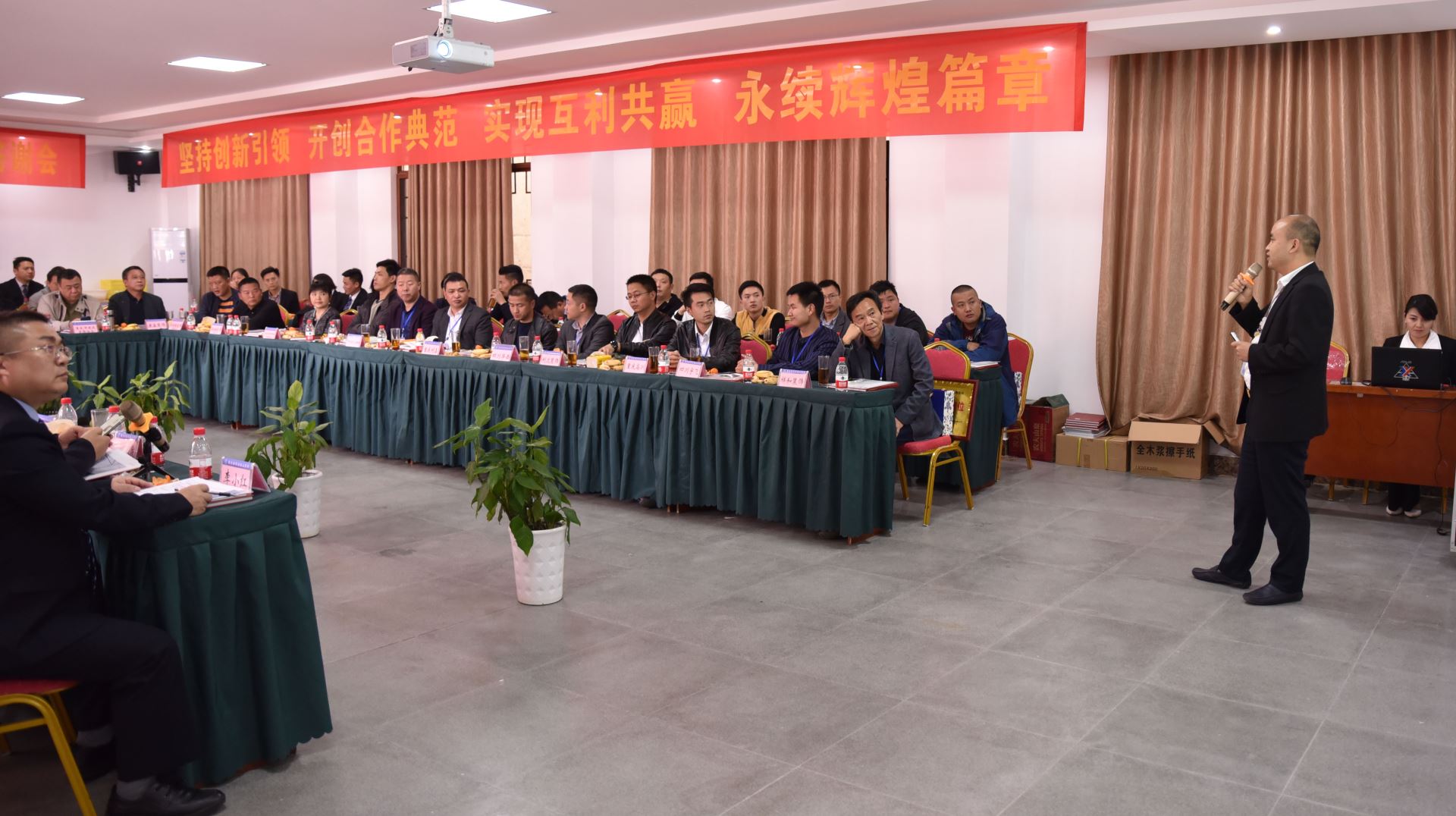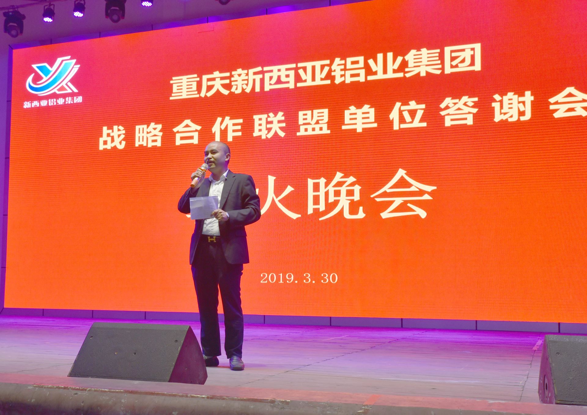 為進一步增強與新老客戶的合作交流,提升公司與新老客戶的戰略合作聯盟內涵,2019年3月30日,重慶新西亞鋁業(集團)股份有限公司在“AAA”級風景旅游區重慶市石筍山召開了2019年“戰略合作聯盟單位答謝會”。中國鋁業協會、重慶市新材料協會、重慶建筑裝飾協會,重慶家居協會和來自全國各地的部分戰略合作聯盟單位領導以及集團公司經營班子、市場開發部、客戶服務部部份員工共計100多人參加了答謝會。公司副總經理李小紅主持了答謝會。