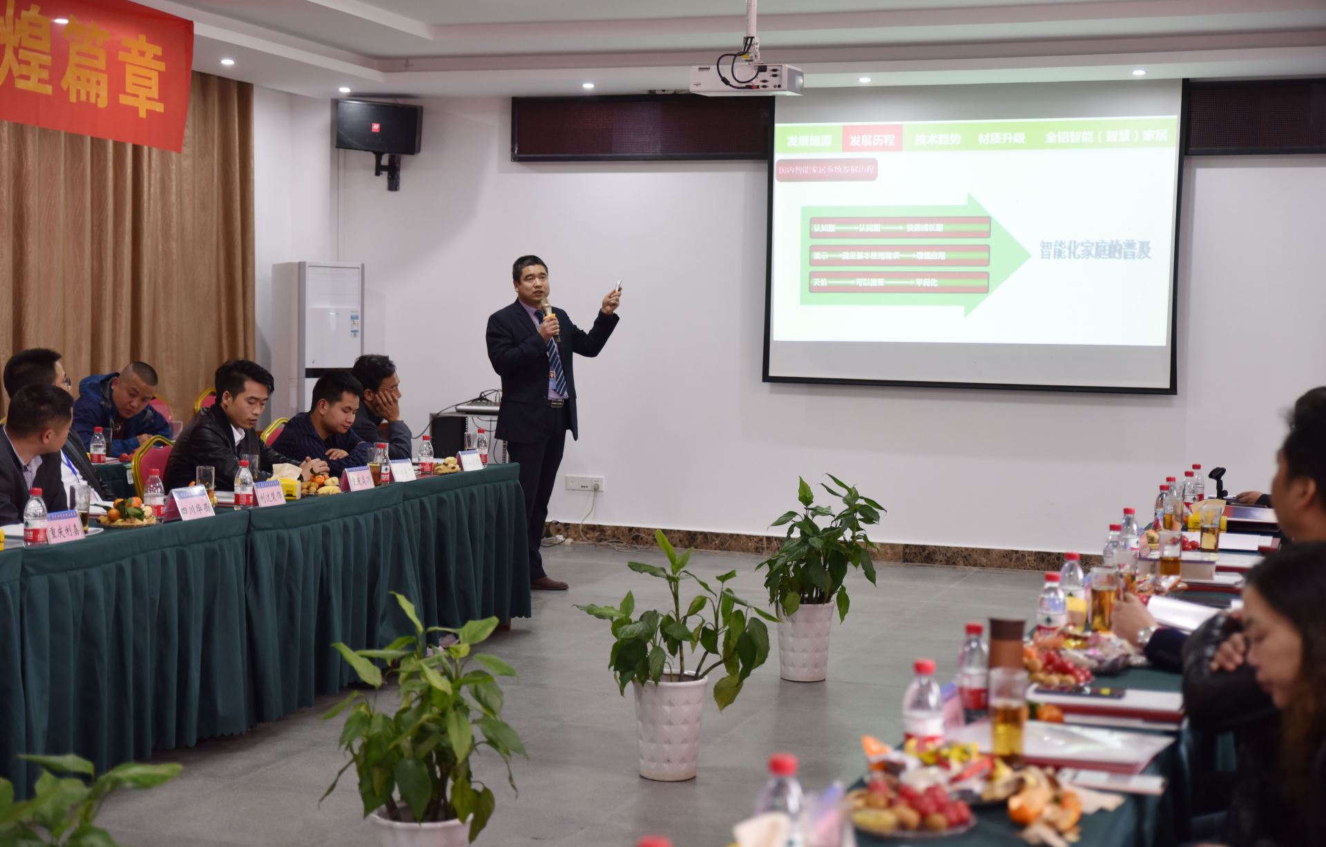 答謝會上,集團公司總經理助理王凱分享了全鋁智能家居的性能、特點、十大優勢及未來發展趨勢。市場開發部經理唐春圍繞公司精益生產、精準服務、競爭優勢等方面進行了專題發言。