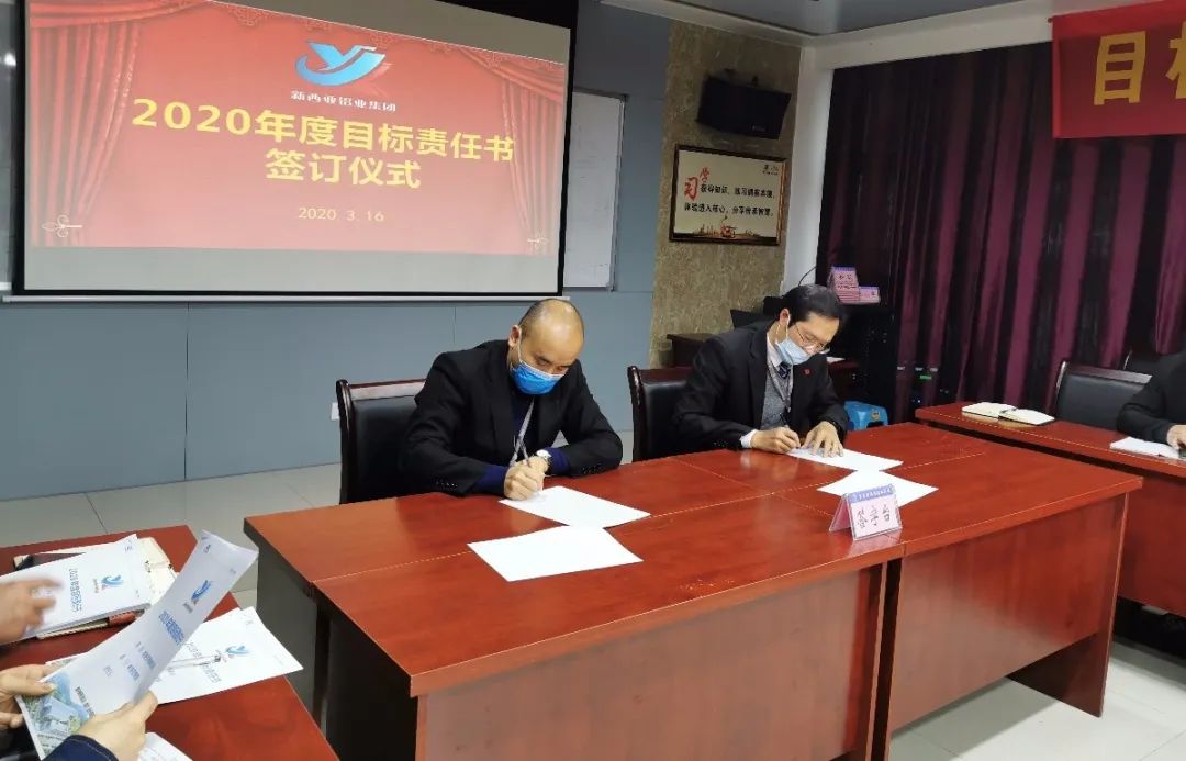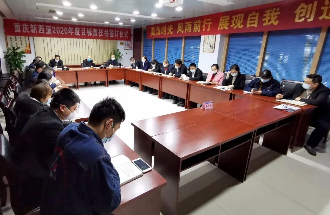 3月16日,重慶新西亞鋁業集團2020年度目標責任書簽訂儀式在公司三樓會議室舉行,儀式由常務副總經理周雄主持,公司經營班子、主管級以上管理者共計30余人參加。