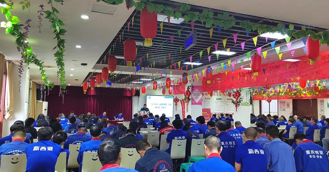 楓紅似火,收獲似金。為進(jìn)一步統(tǒng)一工作思想,明確工作任務(wù),強(qiáng)化工作擔(dān)當(dāng),團(tuán)結(jié)和帶領(lǐng)每一個(gè)新西亞員工認(rèn)清當(dāng)前形勢(shì),應(yīng)對(duì)當(dāng)前挑戰(zhàn),沖刺全年目標(biāo)。10月8日,重慶新西亞鋁業(yè)集團(tuán)在職工食堂組織召開了二〇二一年第八次職工大會(huì)暨奮戰(zhàn)第四季度動(dòng)員大會(huì)。集團(tuán)公司各事業(yè)部領(lǐng)導(dǎo)、職工共計(jì)230人參加會(huì)議,會(huì)議由鋁裝飾事業(yè)部執(zhí)行總經(jīng)理傅明華主持。