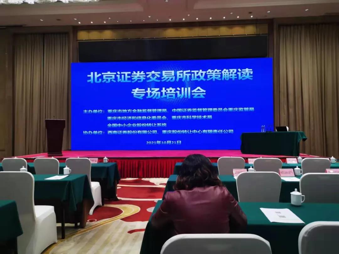 會上,重慶證監(jiān)局黨委委員、副局長鄭松山、重慶市地方金融監(jiān)督管理局黨組成員于蓉先后致辭,北京證券交易所西南區(qū)域首席代表李云祥、西南證券投資事業(yè)部執(zhí)行董事何泉成分別作了北京證券交易所政策解析。