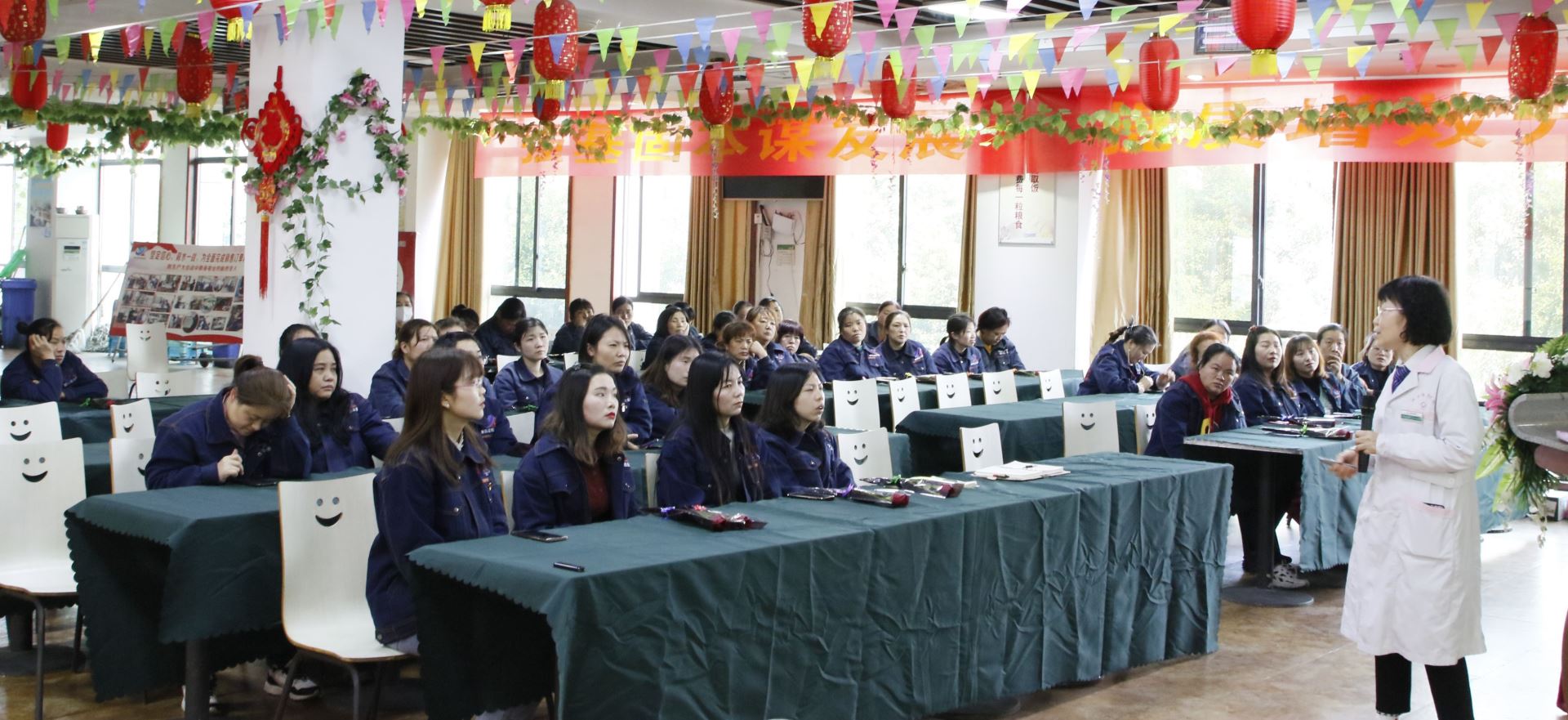 為關(guān)愛(ài)全體女職工的身體健康,還邀請(qǐng)了江津佳華醫(yī)院的婦科主任劉從君醫(yī)生為全體女職工開(kāi)展了“女性健康知識(shí)專題講座”。并聯(lián)合江津佳華醫(yī)院開(kāi)展共筑婦女“兩癌”防線的免費(fèi)體檢活動(dòng),為所有的女職工同胞送上一份溫暖又貼心的節(jié)日禮物。