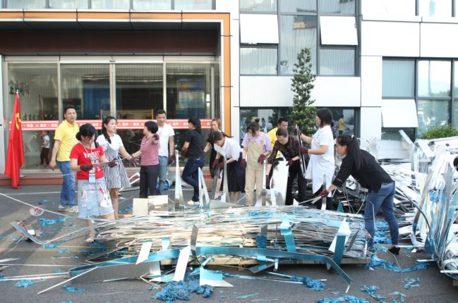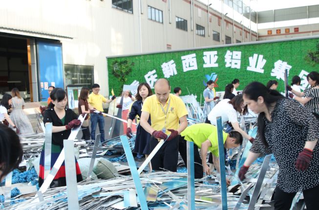 數月來,公司生產持續繁忙,每天都將產生大量的邊角余料,這些廢料如不及時處理,將嚴重影響公司正常生產。為此,公司黨支部“急生產所急”,適時組織了這次義務勞動。勞動內容:把粘貼在鋁板邊角余料上的保護膜一塊一塊撕下來,然后進行打包處理。在整個勞動現場,從總經理到一般員工,從共產黨員到普通群眾,大家心往一處想、勁往一處使,挽起衣袖,談笑風生,不叫苦不叫累,人人干得汗流浹背、熱火朝天。表現出新西亞人積極樂觀,甘于奉獻的高尚情操。夜色慢慢降臨,參加義務勞動的全體人員越干越歡,穿梭忙碌的身影,伴隨著燈光閃爍,在活動現場形成了一道亮麗的風景線。經過兩個半小時的辛勤付出,中庭廣場中堆積如山近20噸的廢鋁邊角余料終于全部清理完畢。