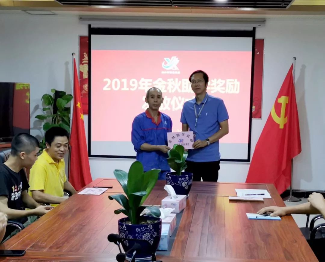 8月29日上午,在新西亞集團黨建活動室,重慶新西亞鋁業集團經營班子成員代表公司黨支部書記、董事長/總經理劉斌,向首批獲得“金秋助學 ”的員工子女頒發了助學金。