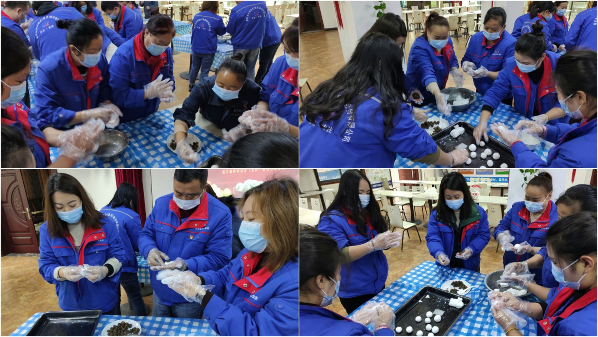 活動在公司食堂熱鬧開展,大家紛紛擼起袖子,迫不及待地上手參與,將提前準備好的糯米粉加水揉捏成團再分切成一個個小劑子,再將劑子壓扁,把備好的餡料放到圓形的面皮上,一收一搓,忙得不亦樂乎。