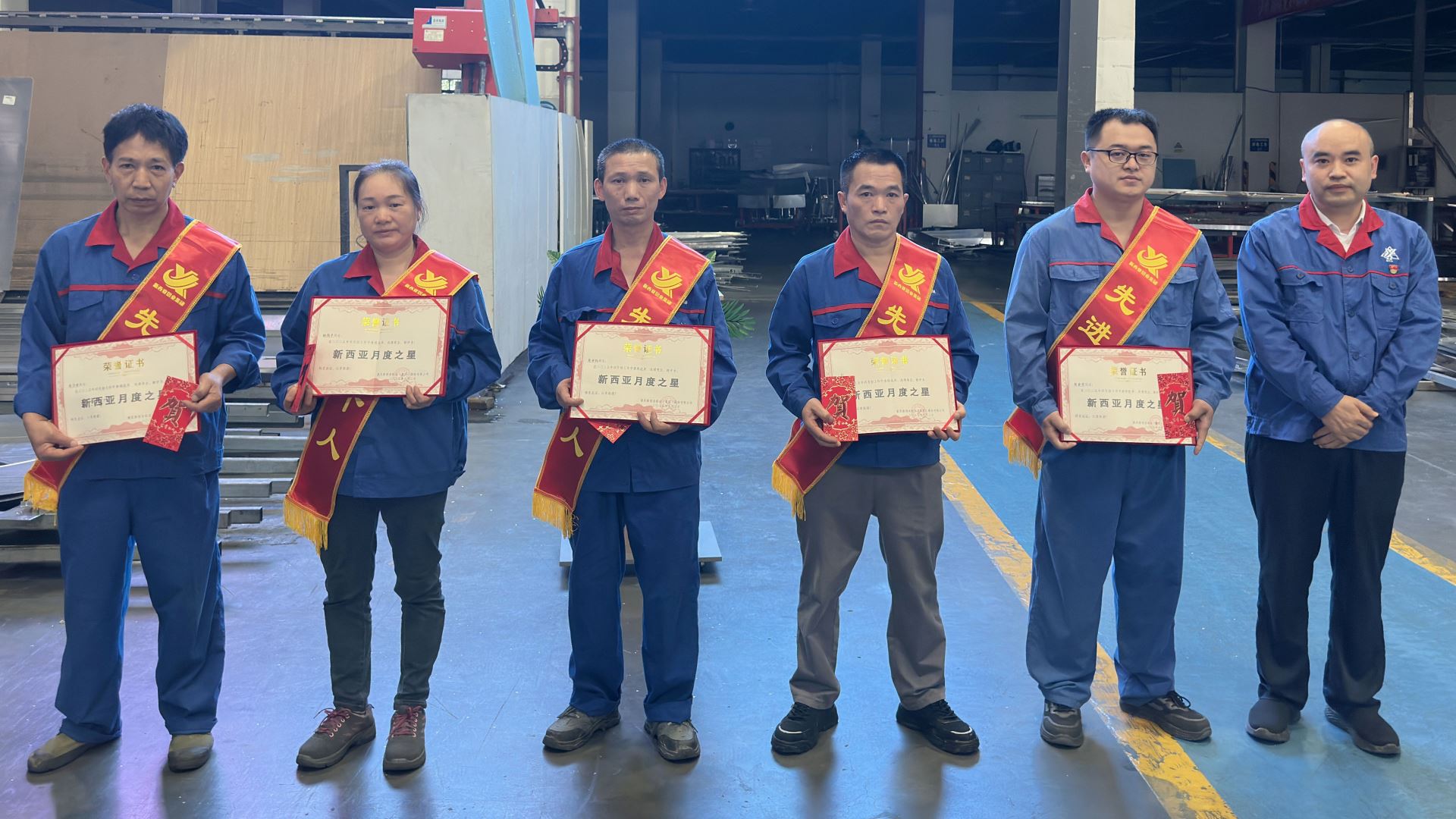 表彰環(huán)節(jié),4月份“新西亞之星”名單正式公布。鈑金車間折彎工張金榮、裝配工楊德平、打磨工蔣世權(quán),噴涂車間前處理工代珍友,運(yùn)營保障部勤雜工周澤榮等五位來自基層一線的員工代表,憑借精湛的技藝、高度的責(zé)任心和敬業(yè)精神,在平凡的崗位上做出了不平凡的業(yè)績,以自己的實際行動詮釋了“新西亞精神”內(nèi)涵。黨支部書記、總經(jīng)理劉斌為他們頒發(fā)榮譽(yù)證書和獎金,并對他們的辛勤付出表示充分肯定和衷心感謝。
