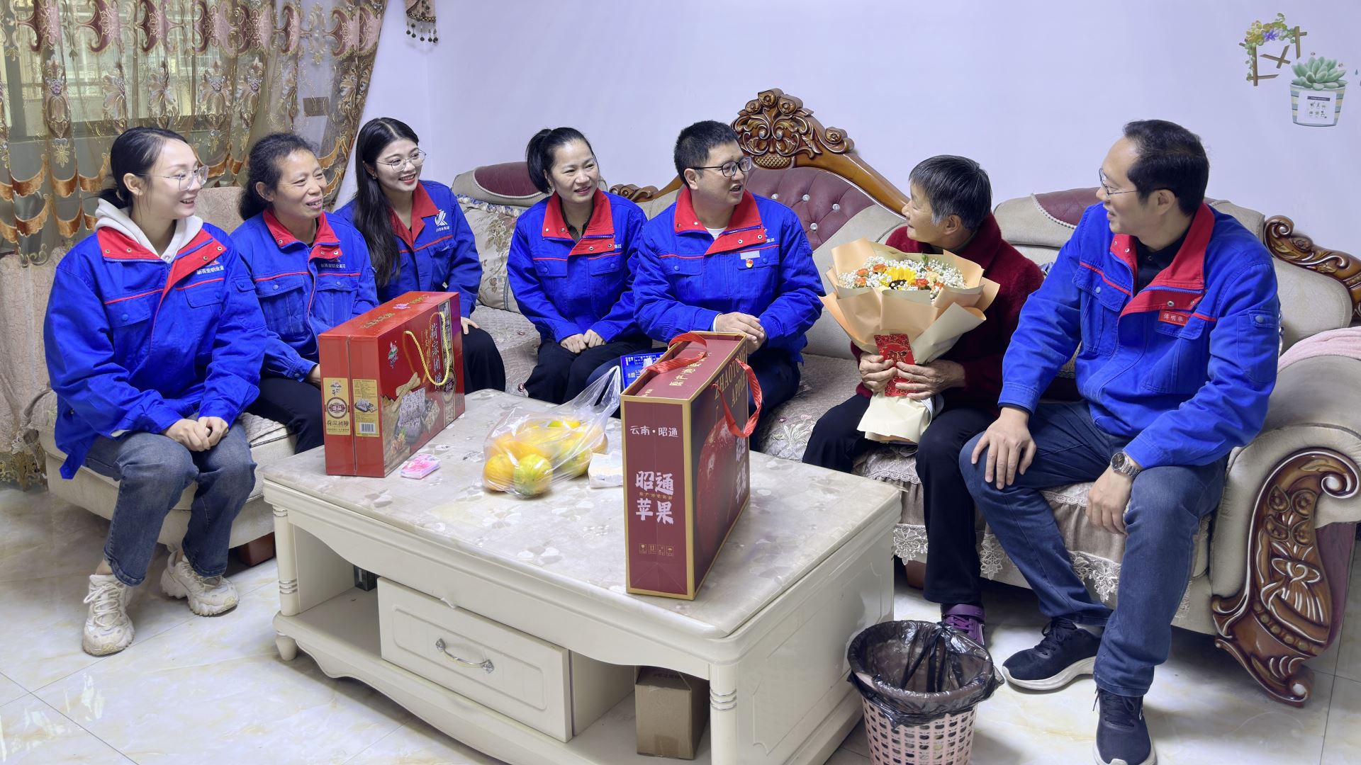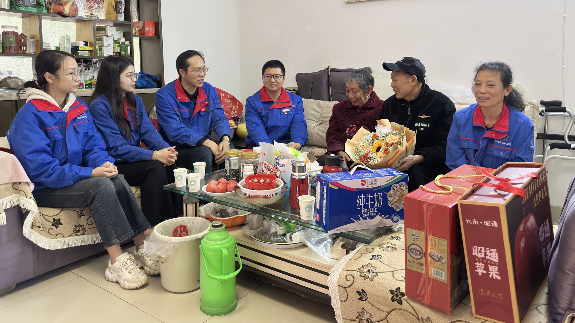 黨支部書記曹健、工會主席傅明華、團支部書記張麗芳及公司員工代表組成慰問組,開展座談并登門走訪,將滿載敬意的慰問品與真摯關懷送到員工父母手中。此次“組團送溫暖”,既是對“尊賢頌德、感恩奉獻”企業文化的生動踐行,也是對集團發展歷程中孝道與感恩精神的溫情回溯。