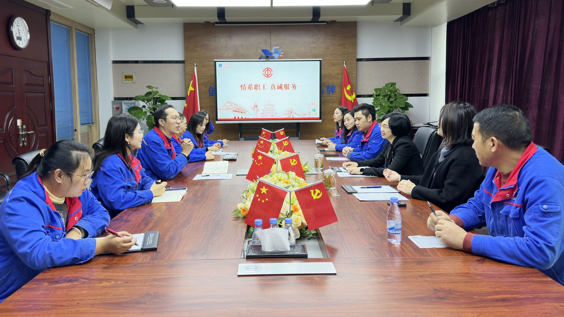 11月18日上午,江津區總工會副主席鄒芝蘭、區職工服務中心主任雷龍鈴蒞臨新西亞鋁業,重點圍繞職工困難幫扶、職工互助險宣講及提升職工生活品質等工作開展上門服務與精準指導。