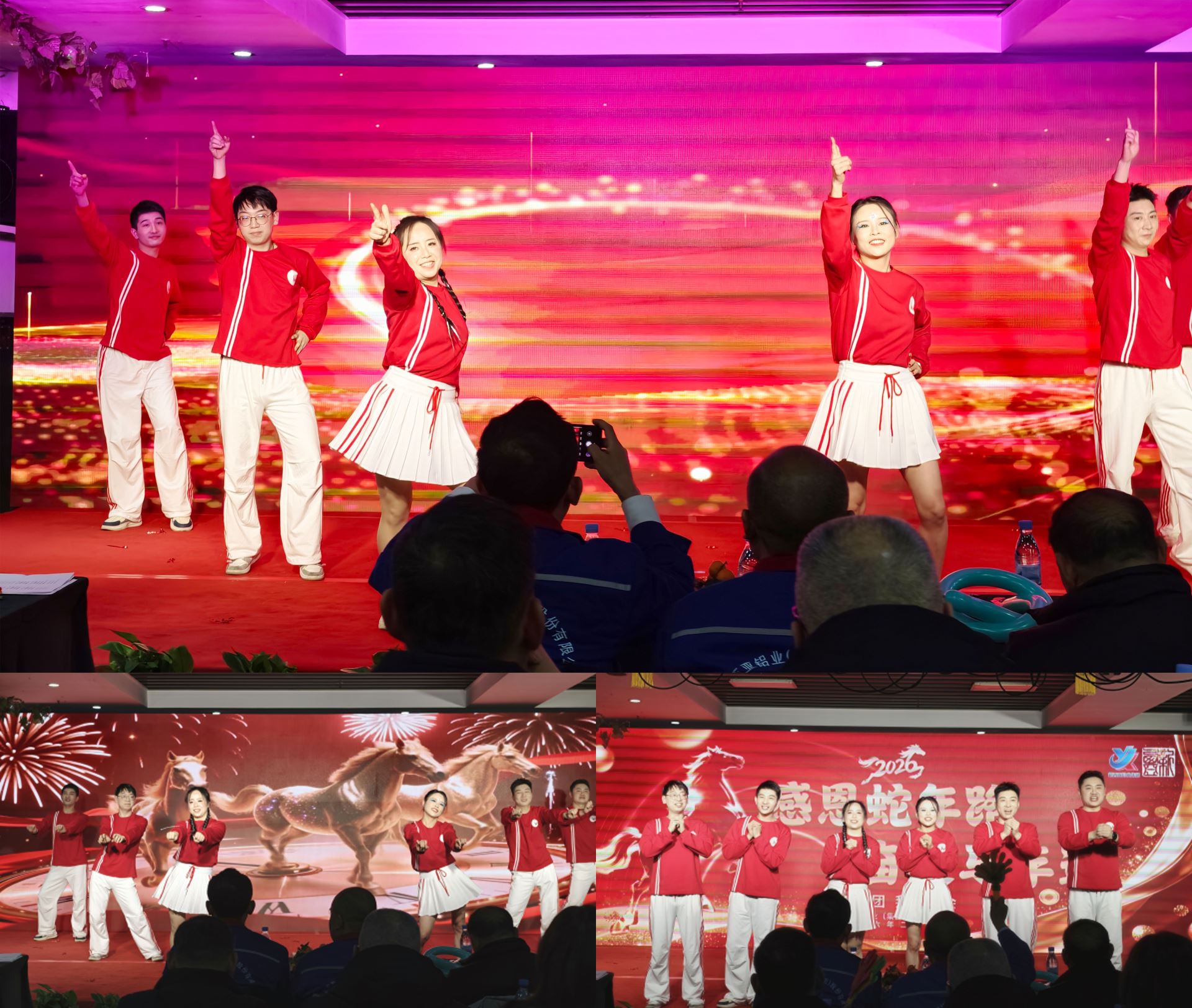 尾聲之際,生產運營部傅熊等人獻上現代舞《馬年大吉》,氣勢恢宏,寓意策馬揚鞭。