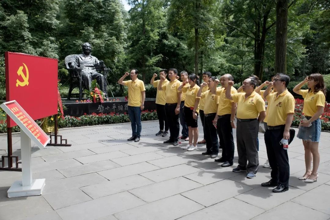 參觀學習結(jié)束后,黨員同志們在鄧小平銅像前莊嚴地舉起右手,面向黨旗重溫入黨誓詞,表達聽黨指揮,堅決跟黨走的堅定信念。