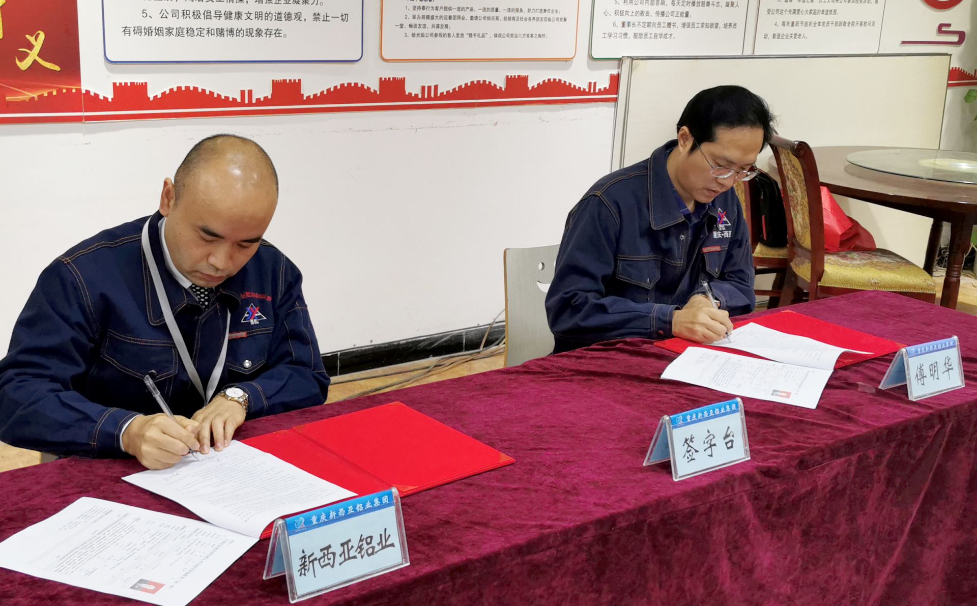 為提升集團公司高層管理者的綜合素質提升,集團公司總經理劉斌,在會上分別與集團公司副總經理傅明華,集團公司總經理助理王凱簽訂了《外派培訓協議》。